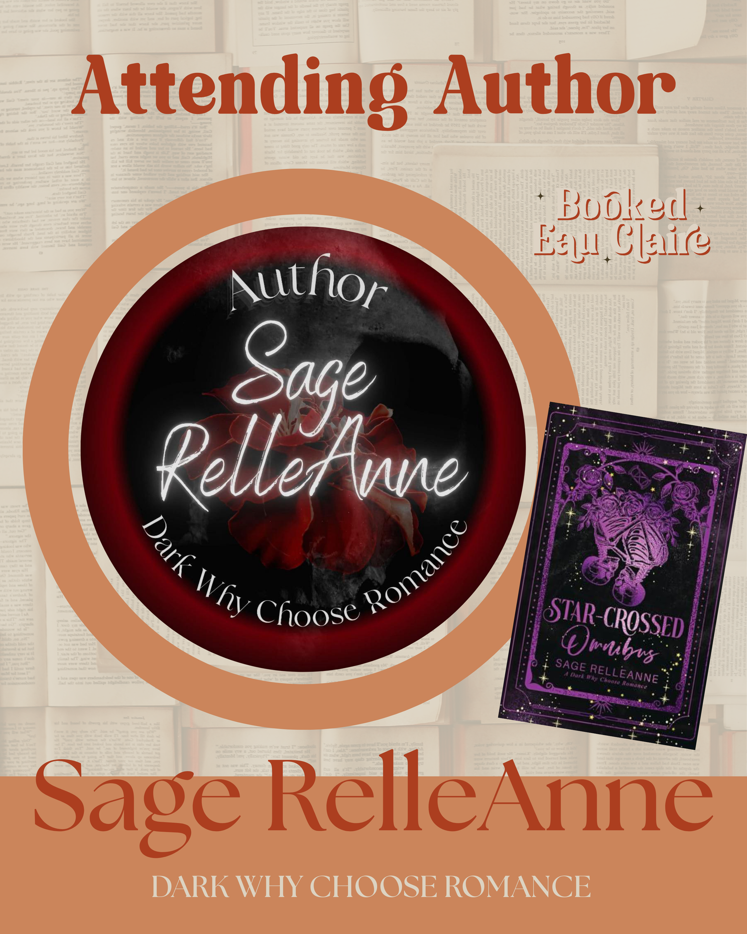 Sage RelleAnne is an author who resides in the Florida Panhandle. She writes both dark and diet dark why choose romance. While all of her books are saturated in suspense, a happily ever after is always guaranteed. She will be signing her books, including special edition copies, so come by and say hi!